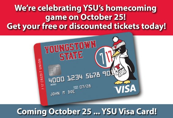 7 17 Credit Union kicks off YSU’s Homecoming with FREE Tickets; will launch YSU Visa® Credit Cards at Homecoming Game